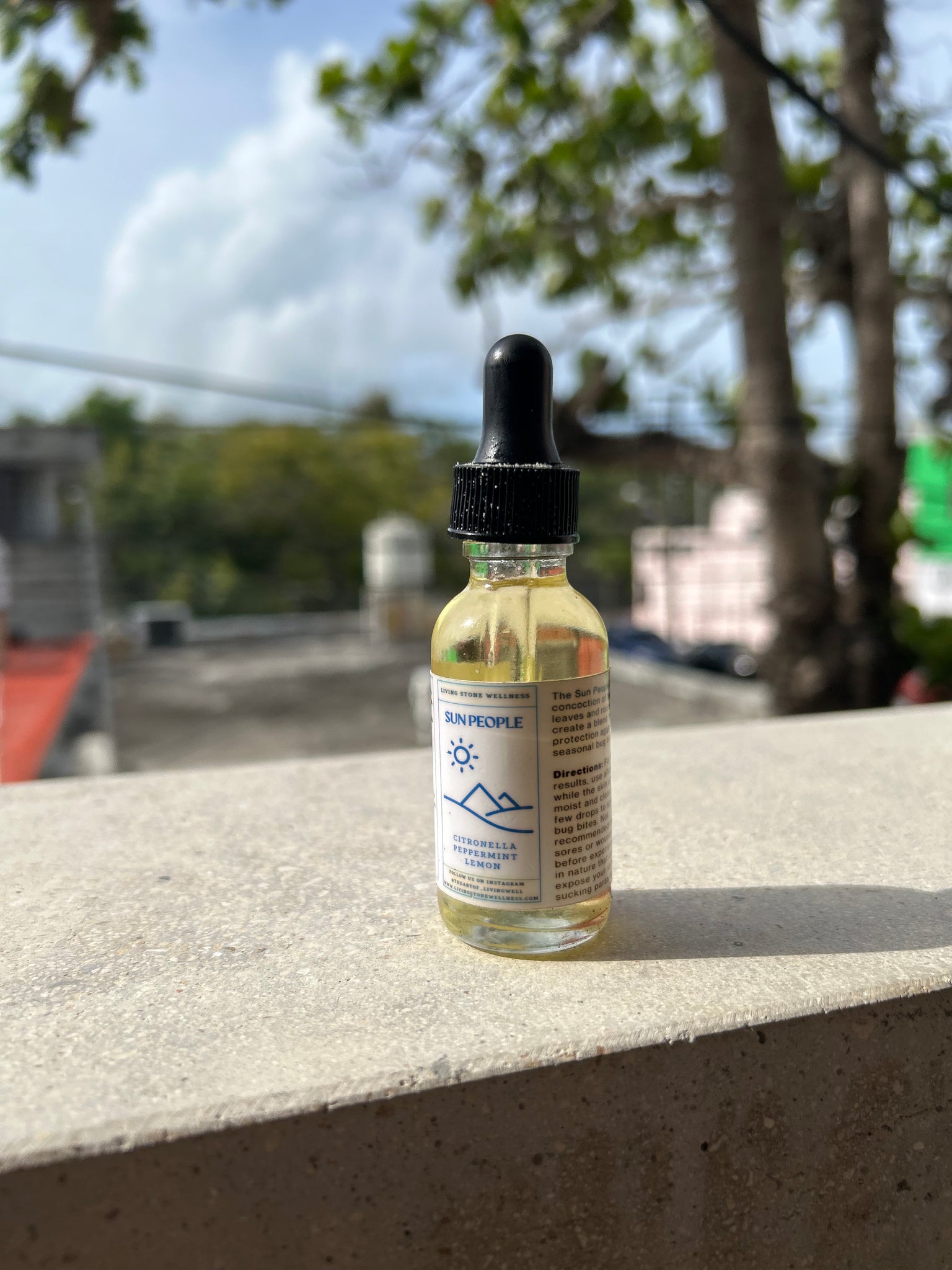 Keep your glow and protect your skin naturally with Sun People, a lightweight herbal body oil crafted with every ingredient that bugs love to hate. This blend features basil, rosemary, lavender, neem, and fevergrass (lemongrass)—a powerhouse lineup known for repelling mosquitoes and other pests while nourishing the skin.